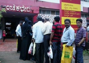 Few months back Udupi people faced somewhat same problem while applying for ration card. The procedure are same and the problem here are worst at the taluk Office. The long standing Queues proves that the system of giving 50 applications will not be enough. There should be more counting and more staffs including more applications should be given.