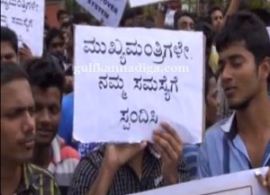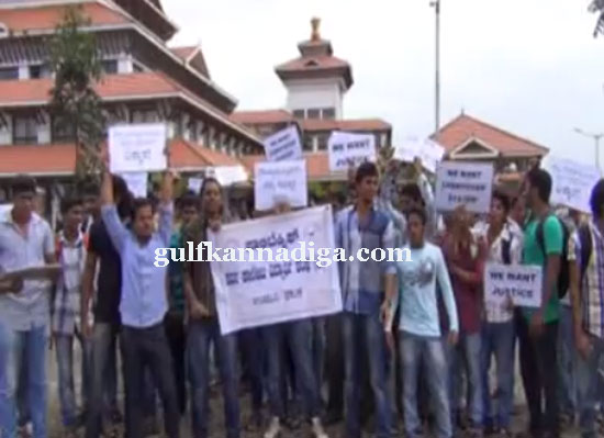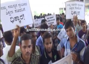 Udipi; July 27: Expressing anguish over the problems faced by the students regarding “carry-over” system students of Manchi, Manipal, Kundapur and Kadiyaly staged a protest in front of the DC office on July 27.