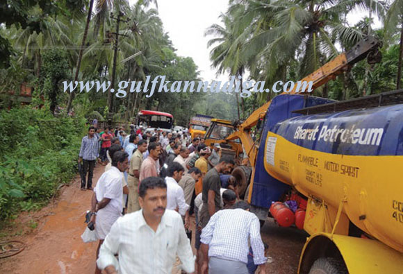 Bus driver Chandra, conductor Babu and some passengers of the bus named Dr Mohammed, Bhavya, Devaki and Dr Shrinivas sustained with minor injuries. Long lines of vehicles were seen on either side of the road and after one and half hour traffic became cleared.