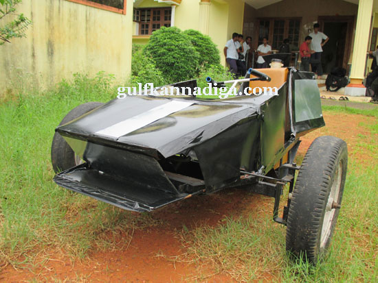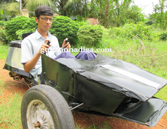 Sharath, an 11nd year PUC student of SMS Pre-degree College, Brahmavara has prepared this model car during his summer vacation.