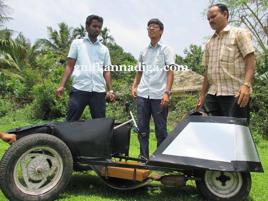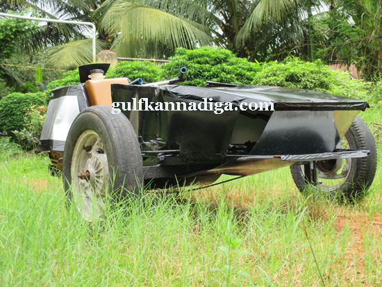 But here in one of the rarer of rare cases one Mr Sharath, a lad of 17 years old, resident of Chanthaaru village in Udipi taluk has proved it other way round by assembling a three wheel model car by saving his pocket money. He says he has spent only Rs 10,000/=in the preparation of this car and if we improve this one by spending little bit of more money, this three wheel car can be used in army as well.
