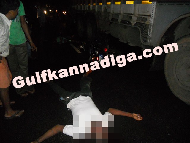 Sources said that as they were passing over the Uppunda Bridge, a lorry with Rajasthan registration was coming from Mangalore towards Byndoor, rammed into their bike.