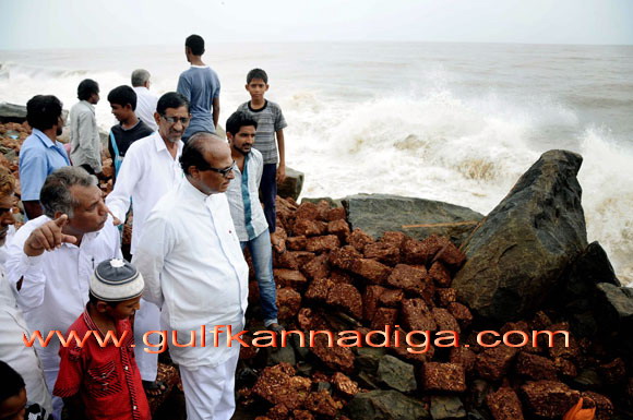 He visited the damaged place from the sea erosion and discussed with presspersons that the area looks scary and when he was a member of parliament he assured them about providing home facility at other side, but people were didn’t accept. He further said that now people asking help, but there is no government place and he assured to give the place near Dheralakatte.