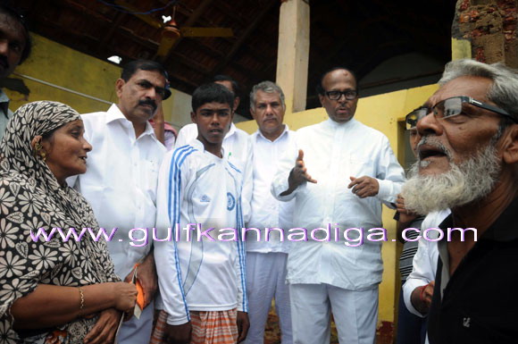 He visited three houses, which were damaged from the sea erosion and he provided the financial help Rs 1000 each to house owners Rehana Muhammad, Aliyabba Fakeera and Alimama Moideen.