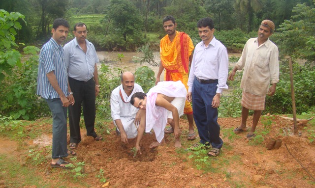Veda Murthy Harish Bhat,priest( Archaka) Kamalashile shree Durgaparameshwari temple has inaugurated the Bilva revolution by planting Bilva saplings.