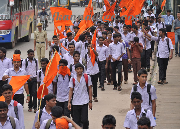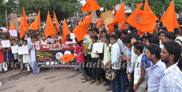 Addressing the protesters ABVP city secretary Yathish Kumar P said that the ruling party UPA government is most corrupted party in the history of India. It has involved in more than Rs. 12 lakh crore amount of corruption and it has failed to control the inflation and rise of price. The value of price is decreasing in day by day and union government is direct responsible to running commercialisation, corruption and anarchism in the educational field, he expressed the angriness.