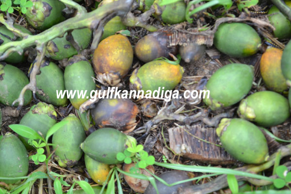 DK/Udipi; August 14: In undivided Udipi, Dakshina Kannada .Shimog, Chickmaglur and north Kannada mostly areca nuts are being grown in abundance. But this time due to continuous rain, rotten disease which played havoc on areca nut crop, the backbone of the farmers is showing all the signs of snatching the life from the farmers and tender areca nuts are falling from the tree before its maturity due to rotten disease. Though with the spraying of Bordo liquid 90% of the disease can be controlled, this time due to torrential rain 70% of the areca nut trees have been remained without spraying.