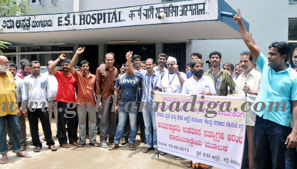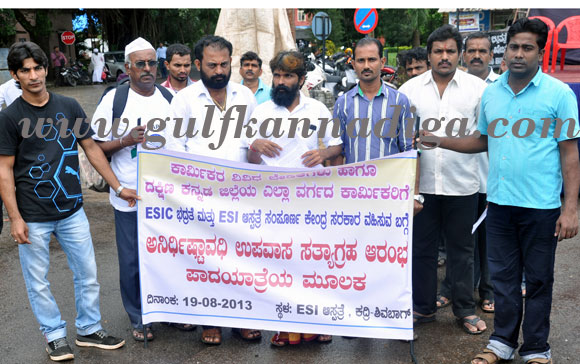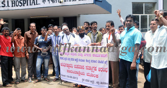 Mangalore, august 19: Urging to fulfil the demand, to hand over the Kadri ESI hospital to union government and provide the ESI facility to every hospital of the district Akhila Bharatha Karmika Sangha state general secretary Sudattha Jain started a movement by the bare foot and staged indefinite hunger strike in front of Kadri shivabhag ESI hospital.