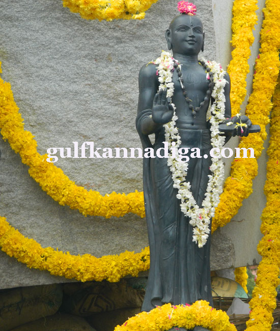Udupi; August 21: Preparations at Kunjarugiri are underway to install a 32 feet tall monolithic statue of Sri Madhwacharya at Kunjarugiri near Pajaka Kshetra where the saint philosopher spent his childhood days. The monolithic marble statue is planned to be installed at the site as per the decision taken by Sri Vidyadhisha Theertha Swamiji of Phalimar Mutt.