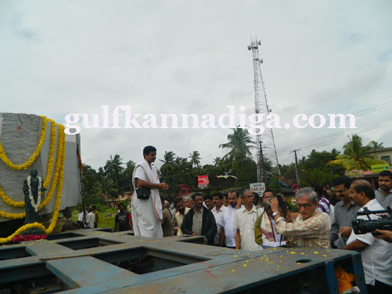 At Kunjarugiri, the works of erecting an eight feet tall platform weighing 80 tonnes is in the final stages. The statue will be installed at a cost of Rs 1.5 crores and will be sculpted by the renowned national award winning sculptor Ashok Gudigar.