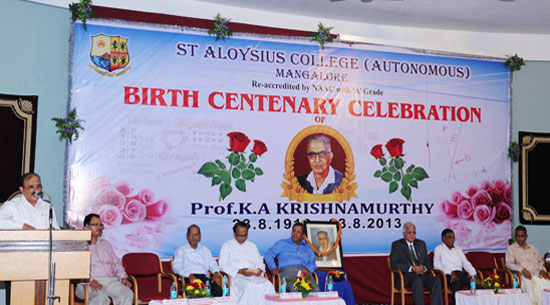He was speaking on the occasion of centenary birthday celebration of Prof. K.A. Krishnamurthy, held at Eric Mathias Hall, St Aloysius College here on Friday August 23, he said that, when he was in school days he was good education and his teaching skill and friendly nature made other students as follower of him. He adored Carnatic music; his wife Kanakavalli was an equal genius, he added.