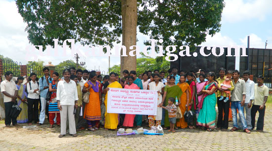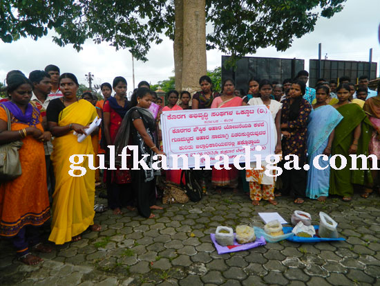 Udupi; August 23: ‘Koraga Abhivriddi Sangha’s vokkoota’ had organized a protest in front of DC office on August 23, Friday against the distribution of substandard food grains to the Koraga community and demanded an immediate action supplier.