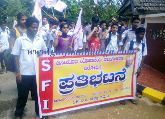 Mangalore, August 24: Opposing the handing over of mid day meal project management to private corporate company student federation of India staged a protest in front of the Zilla panchayat office.