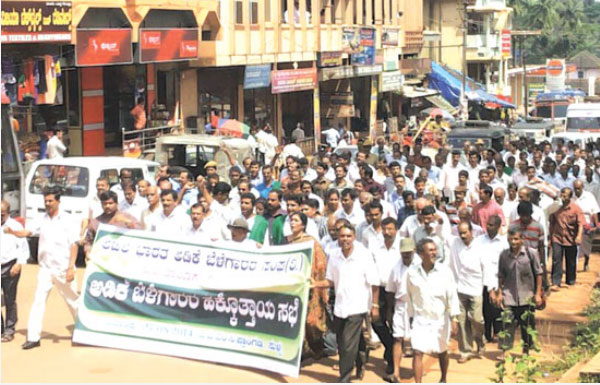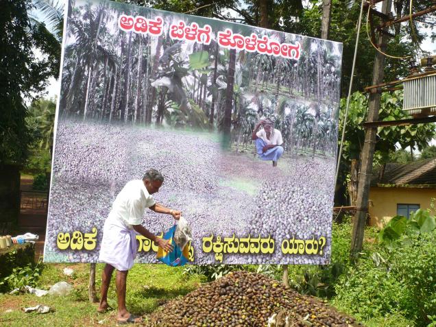 The farmers led by All India Areca Growers’ Association were angry that the government has not given them any compensation for the losses they suffered because of ‘kole roga’ (fruit-rot disease). According to the association, the disease had destroyed “more than 90 per cent” of crop.