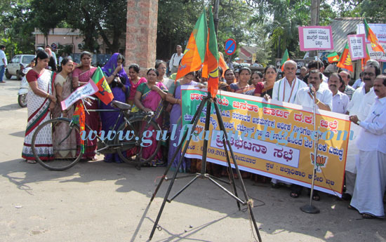 Mangalore, September 3: The union government must take the stringent action to stop the rise in price and inflation, urging these issue BJP leaders staged protest in front of the Deputy Commissioner office.