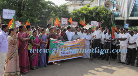 Addressing the protestors’ legislative council member Monappa Bhandary said that due to improper policy of UPA government, rupee losing its value in front of dollar. Though government gives reason that decrease the value of rupee caused to increase the rate for petroleum, no relevant methods have taken to stop the falling value of rupee, he said.