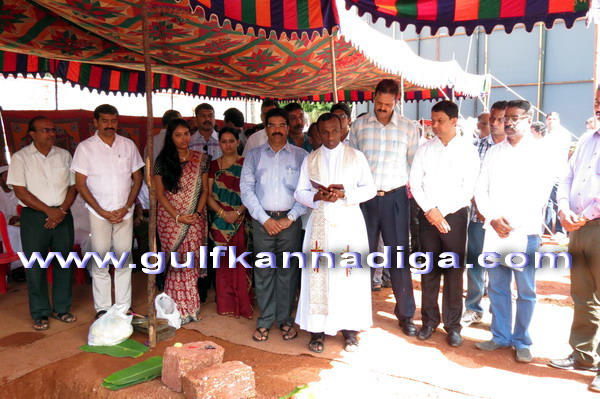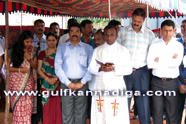 Giridhar Bhat from Radha Krishna (Balambhat) Temple Carstreet performed the pooja. then Assistant Parish priest of Milagres Parish, Fr. Sunil D’Souza blessed the foundation stone and later the Muslim religious head from Farangepet Mosque Mohammed Qamil Sakafi performed the prayers.