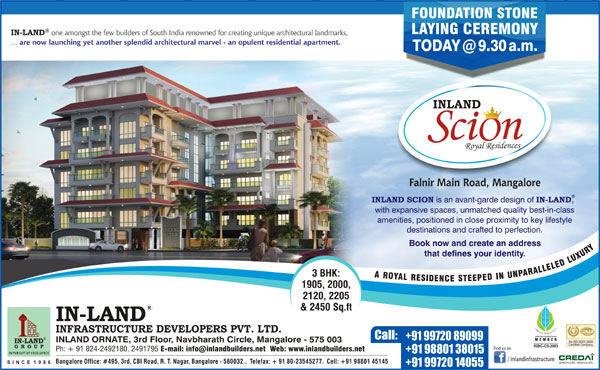 Mangalore, Sep 06: the foundation stone laying ceremony of In-Land Scion, a brand new project by the In-Land Infrastructure developers Pvt ltd was held here in the venue in Falnir Road, on Friday, Sep .6th.