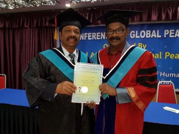 In 2017 United Nations Organisation (UNO) awarded him with Honorary Doctorate in Malaysia.
