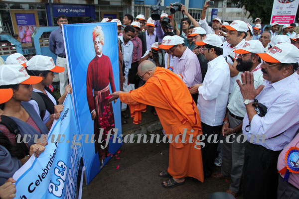 Mangalore,sept. 12: As a part of the celebrations of 150th birth anniversary of Swami Vivekananda and to commemorate the speech made by swami Vivekananda in the Chicago City on 11 september 1893, thousands of students from various colleges of Mangalore participated in the “The Run For India” rally.