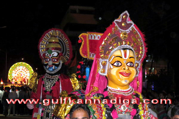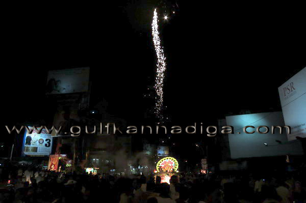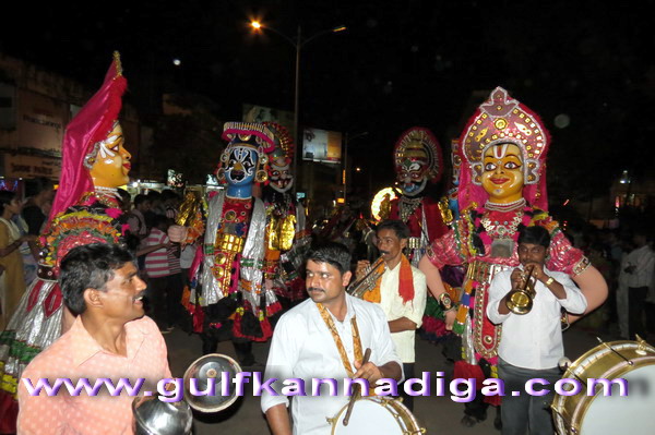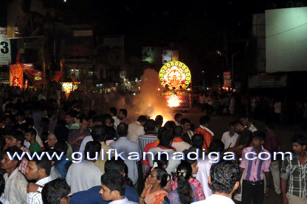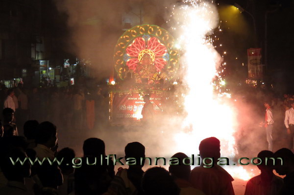 The fest concluded with colorful Shobhayatra and immersion procession of Lord Ganesh idol on September 13, Friday evening along with enticing tableaus, attractive fire work show, puppets shows, chende, Nasik band team. The procession started from K.S.R.T.C and passed through Lalbagh, City Corporation, Hindi Prachara Samithi, Mannagudda Gurji, Newchitra theatre, Car street Venkataramana temple and culminating at car street where the idol was immersed in Mahammayee Temple Lake.