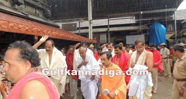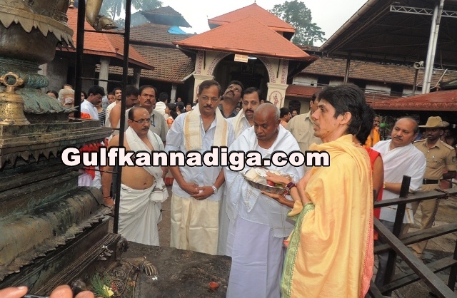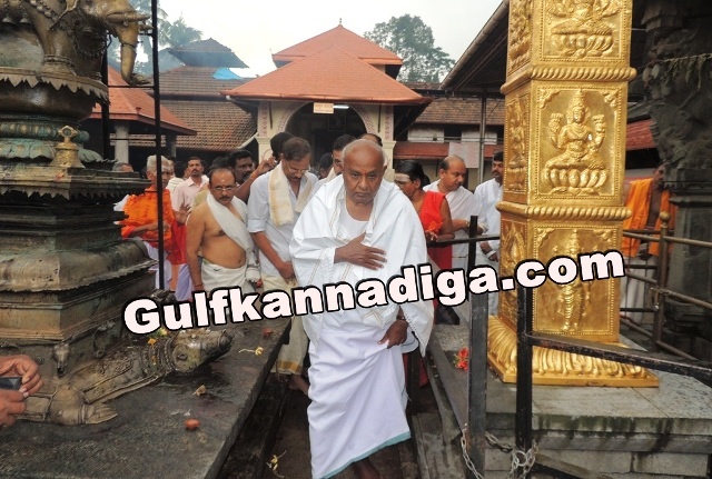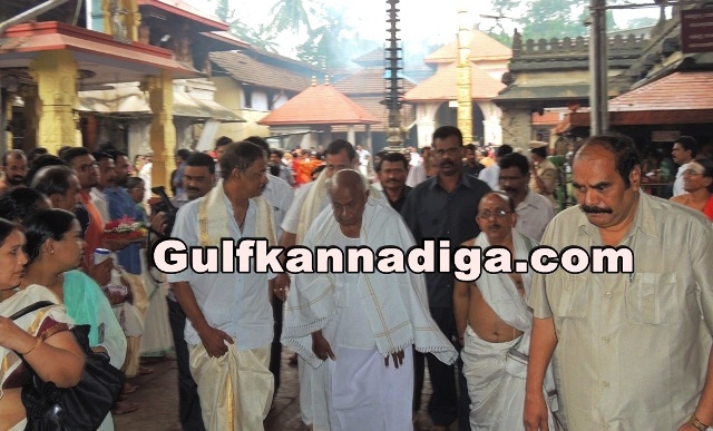 Udupi; Sept 17: Former prime minister and national JDS president H D Deve Gowda has paid a visit to Mookambika temple to seek the blessings of Goddess Mookambika and offered a special pooja.