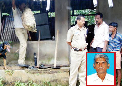 The deceased has been identified as Parameshwar Gowda. After he lost his wife 14 years ago he was living alone at Uppukala. Among his 2 children his daughter is married and his sonstays at Kaikamba.