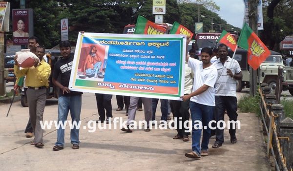 Since Ananthamurthy has to spend more on his travel, BJP unit of Kundapur came forward in helping him by collecting money by begging from the public to meet his travel expenses and in this connection, we have organized a special protest on Sept 21,Saturday,said Ananthamurthy.