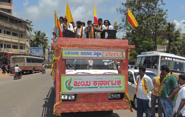 Kundapur; Sept 24: Jaya Karnataka, under the leadership of Muthappa Rai has organized a rally on September 23, Monday, demanding uniform system of education.