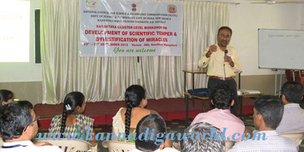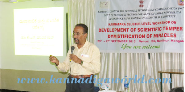 He discussed about this at the Karnataka cluster level workshop on Development of scientific temper and demystification of Miracle, organized by National council for science and technology communication, Department of science and technology govt. of India,  New Delhi and Karnataka Rajya Vignana Parishath, Bangalore at ISD Nanthur.