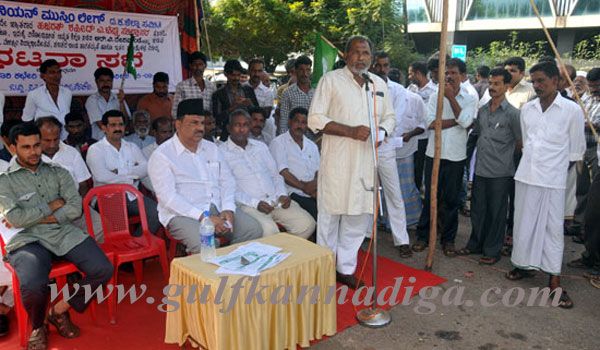 Addressing the protesters Dastagir Ibrahim Aga of IUML national committee demanded government to start University in Tipu Sultan’s name.