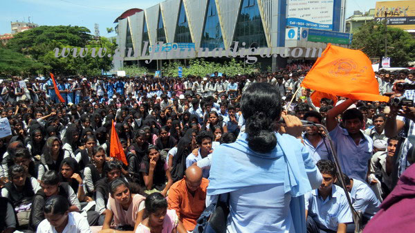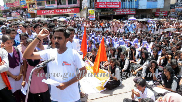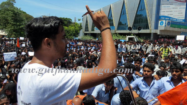 Addressing the protesters the student of the Car street college, Ashwini Raj Shetty said ”We do not want to handover the boy to police, If some someone trace him hen we want to thrash him with sandals in public so that whoever thinks to Rape or sexually harass any girl should think twice before doing so.