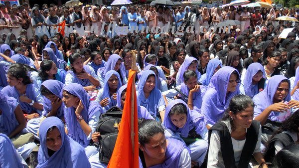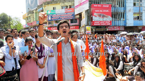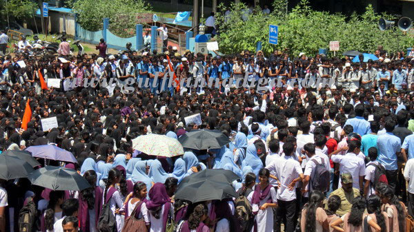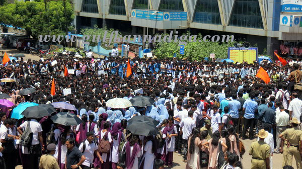 Mangalore, Sep 27: The students of various college and the members of Akhila Bharatha Vidyarthi Parishad (ABVP) staged a protest rally from Ambedkar Circle Jyoti to DC office on Friday 27th Sept, in regard with the mysterious death of Akshatha.