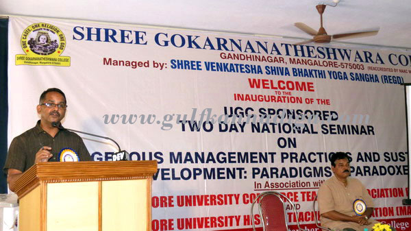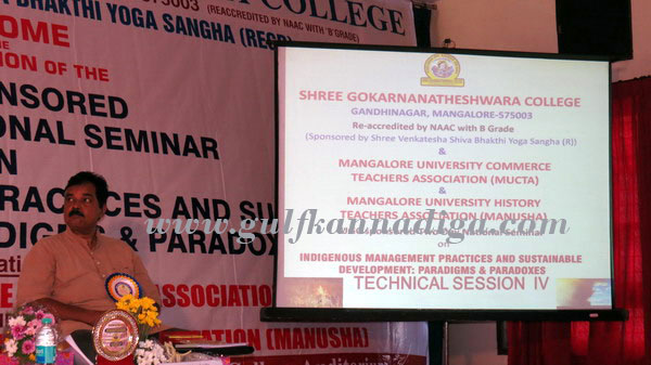 Mangalore Sept 27: Shree Gokarnanatheshara College, Mangalore University Commerce Teachers Association and Mangalore University History Teachers Association jointly organized a UGC sponsored two days National Seminar on Indigenous Management Practices and Sustainable Development: Paradigms and Paradoxes on 26th and 27th Sept at Gokarnanatha College Auditorium.