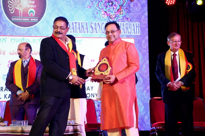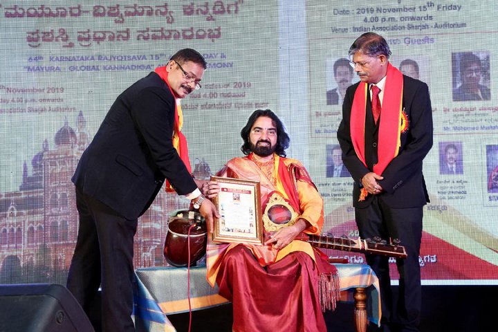 Appreciating his contribution to Indian Music, Sharjah Karnataka Sangha President & Members honoured him with ‘Sangeetha Kala Rathna’ Award on the stage during the ceremony.