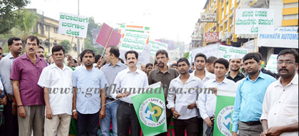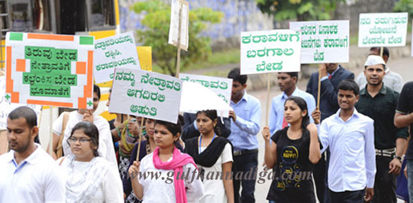 Mangalore, Oct 2: A massive rally was organized in the city from Jyothi circle to DC office against the Yettinahole project on Wednesday October 2.