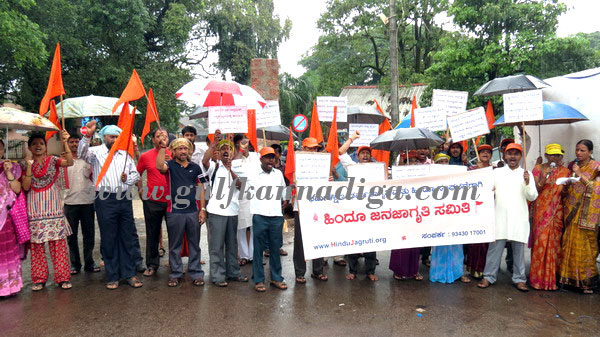 Addressing the protesters Prasanna Kamath of HJS said that, the Congress government is trying to encourage the Muslim community and in this they are neglecting Hindus.