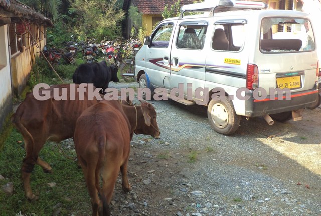 When Rizwan, Manzoor, both the residents of Halageri in Kamadakone village along with Shahil, Sameumulla, Junaid, all are the residents of Gangolli, a total of seven people were going towards Navunda from Herur in two vehicles Omni Maruti and Maruti Echo with five cattles in it, the locals attacked the vehicles and cattles have been taken under their custody and later informed to Byndoor Police station.