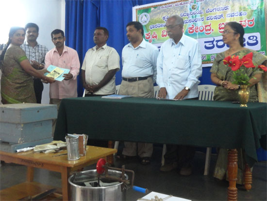 Udupi;Oct 10: In the valedictory ceremony of honey bee cultivation training workshop held at agriculture science centre,Brahmavar,Prof.Yellappa,programme facilitator of Bangalore Krishi Vishwavidyala Samagra Krishi Paddati yojane,after distributing the letter of felicitation said in his speech that training in honey bee cultivation is beneficial to farmers and there are ample scope for honey bee cultivation in the district and farmers should avail the benefits of the training and make honey bee cultivation is one of the main crops of your cultivation, he said