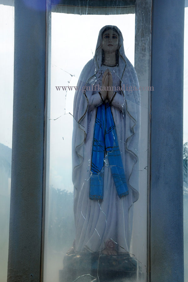 Bantwal, Oct. 13: The grotto of Mary at Our Lady of Loretto Church, Loretto here was damaged by miscreants on Sunday October 13.