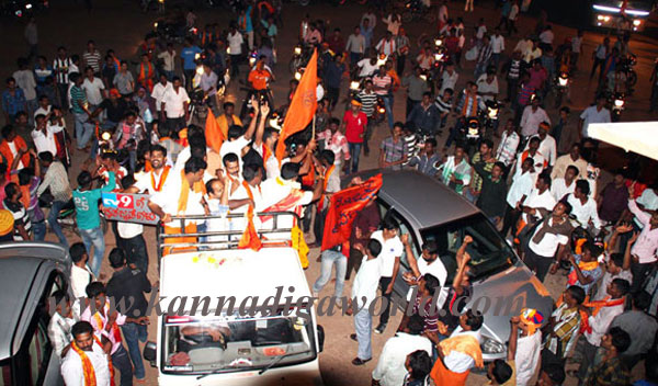 Belthangady, Oct. 14: Lot of people from various places came to gather to welcome the activist Mahesh Shetty Timarodi, Saujanya’s parents Chandappa Gowda and Kusuma and her uncle Vittal Gowda on Sunday, who returned from Bangalore after giving an interview to a news channel about the murder of Saujanya.