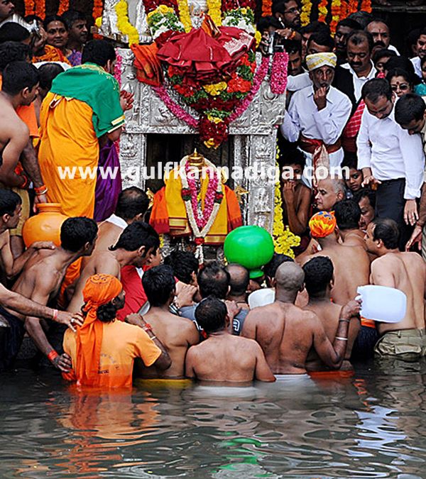 Religious rituals were performed from morning, under the leadership of priest Ananthesha Kedilaya from Dakshina Kannada district. They sprinkled holy water on devotees, soon after Theerthodbhava occurred.