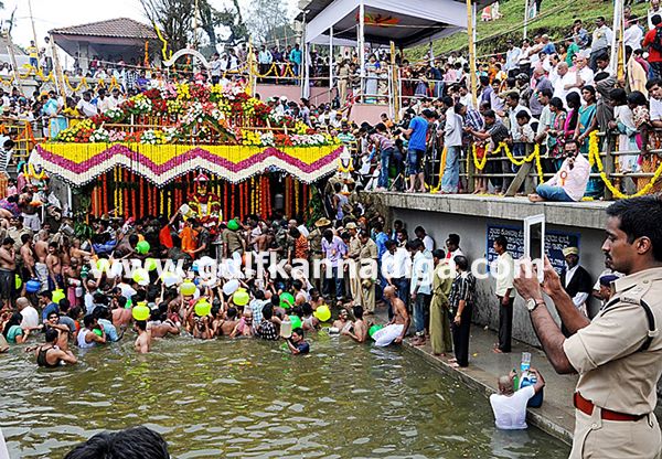 It is believed that once in a year, Goddess Kaveri appears as the sacred ‘Theerthodbava’ during the Madikeri Dasara. The water pours out from the spring as a fountainhead on this day.