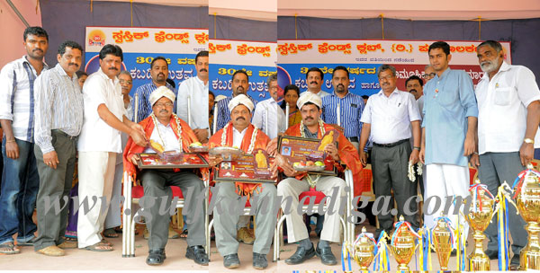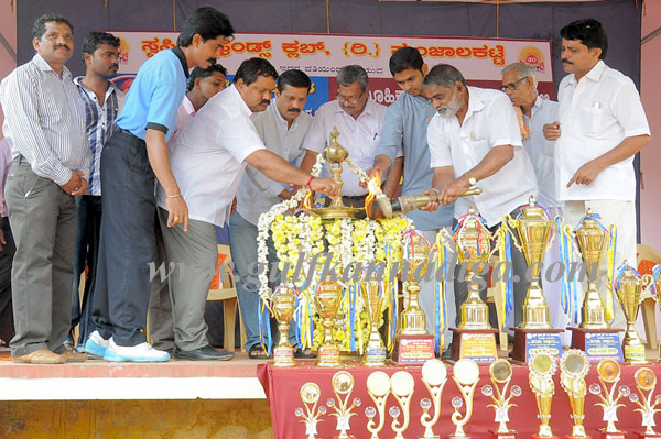 The farmer state level kabaddi player Jagannath Bangera Heraje and Seetharama Hegde initiate the tournament by lighting the lamp.