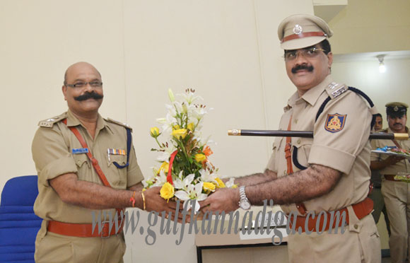Mescom vigilance DySP Vinay Gaonkar handed over the charge, as outgoing SP P V Suresh has already taken charge as DSP of Sagar.