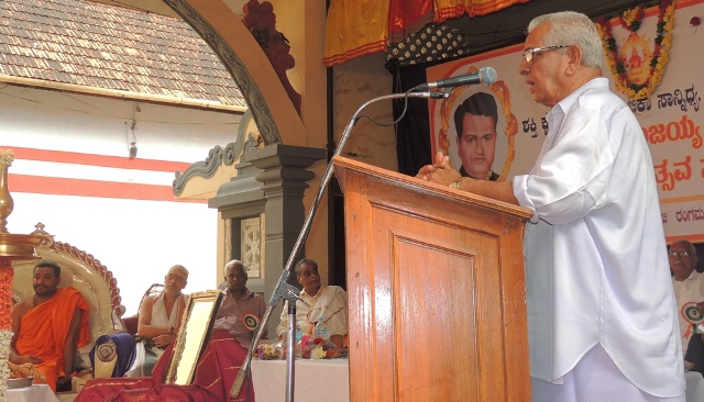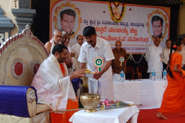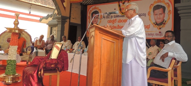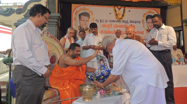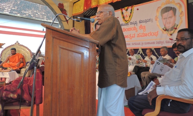 Kundapur;Oct 22 : After inaugurating  the centenary birthday celebration of Kirthishesha Yadthare Manjayya Shetty,held on Oct 22,Tuesday at Kolluru Mookambika temple’s Swarnamukhi Rangamantap, Padmabhushana Dr.B.M.Hegde, retired chancellor of MAHE Manipal said in his speech that in recent times, the practice of honoring and felicitating ,by identifying the people through their good deeds is being dwindling.