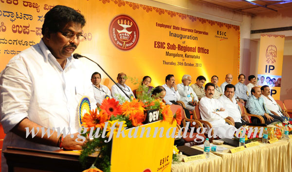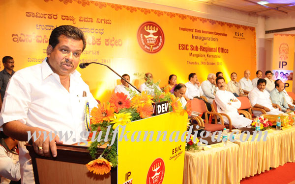 Mangalore, Oct. 24: The Employees State Insurance Corporation (ESIC) Sub -Regional office was inaugurated on 24th Oct by Kodikunnil Suresh, Minister of State for Labour & Employment at a function held in the Sanghanikatana Auditorium in the city.