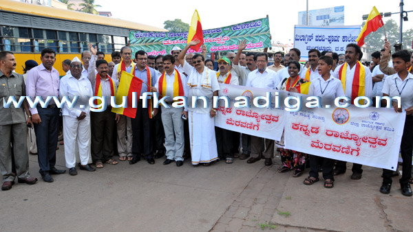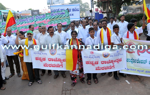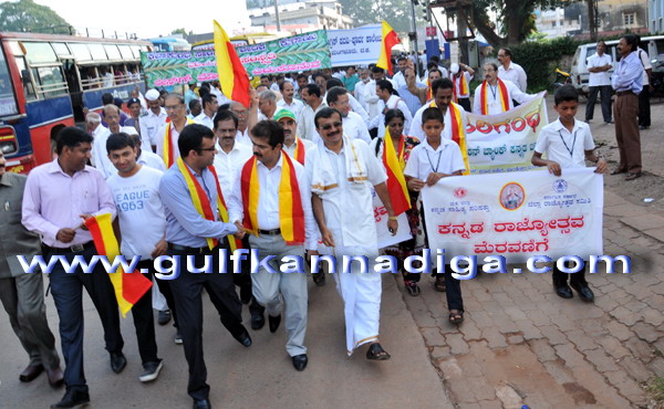 Mangalore, Nov.1: To mark the 58th Kannada Rajyotsava, DK district Kannada Sahitya Parishad and the district administration jointly organized a procession of Kannada Bhuvaneshwari from Ambedkar Circle Jyothi to the Nehru maidan on Friday Oct.1st.