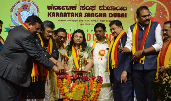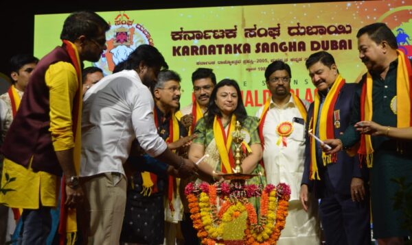 Stage event Presided by Dr Arthi Krishna vice chairman NRI forum – govt of Karnataka, being the chief guest, she applauded the efforts of Karnataka sangha Dubai in uniting and serving the Kannadiga NRI’s of the UAE, she attended this event for the first time after taking charge of the Karnataka NRI forum officially, she expressed her commitment to support Karnataka sangha Dubai and all other associations to build a Kannada Bhavana in Dubai
