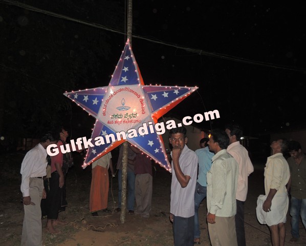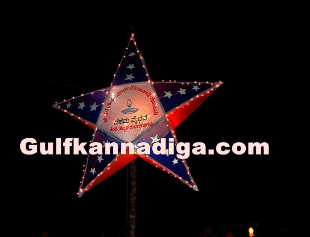 Kundapur: Nov 02 : On account of Chandana yuvaka Mandala (regd)) Bijadi – Gopadys decennial glorification a giant, massive sized ‘Goodu Deepa’(Nested light) was attracting the eyes of the people, which was errected in Kundapur taluk’s Beejady-Hoovinaker junction on Saturday night.